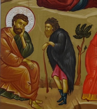 Continuando all'estremo inferiore destro, alcune volte si trova un personaggio rivestito di pelli. «Ah!, se tu aprissi i cieli e discendessi sulla terra » (Is 63,19) così aveva gridato Isaia, ed eccolo ora assistere alla discesa di Dio (20).